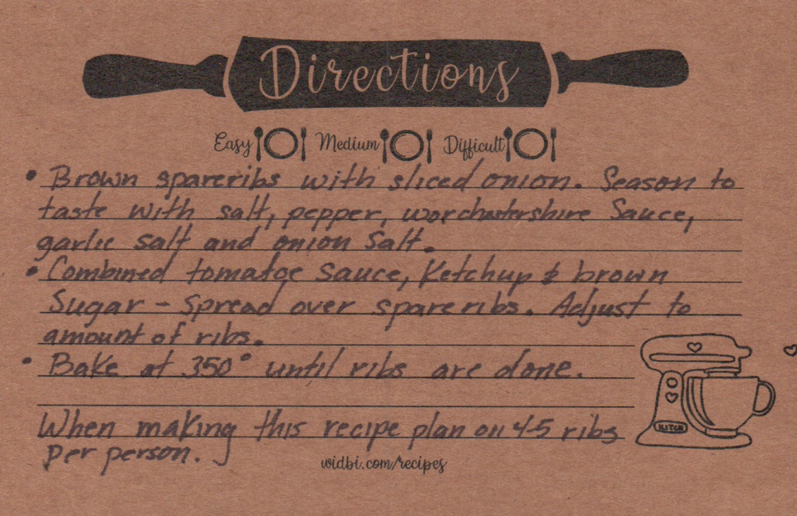 | Tomato Sauce | Amount depends on number of ribs |