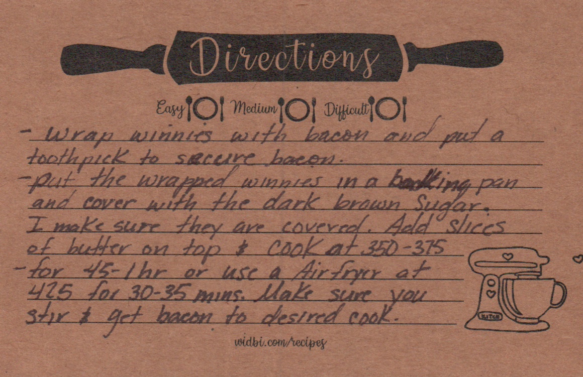 | Bacon | Sliced to wrap wienies |